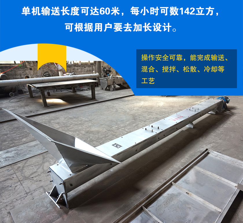 2、單機(jī)輸送長度可達(dá)60米,每小時可數(shù)142立方,可根據(jù)用戶要去加長設(shè)計。