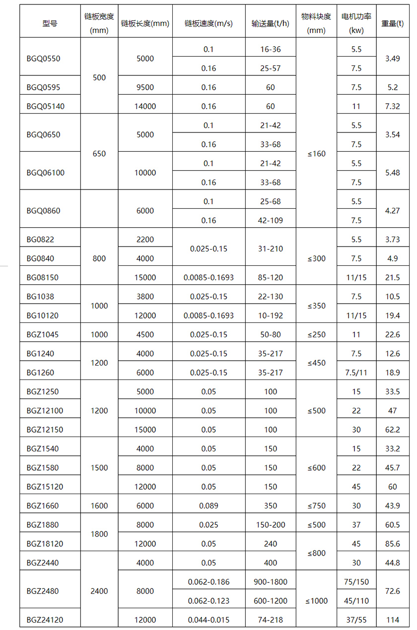 鏈板式輸送機簡稱鏈板輸送機,采用板式鏈條牽引,強度高,鏈板式輸送機輸送傾角可達30°-35°,彎曲半徑一般為3米-5米,輸送長度咔噠250米.