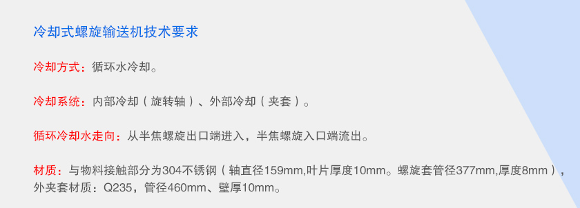 要求:輸送量每小時大于6m³,輸送物料進(jìn)入螺旋入口時溫度為450℃, 出料時溫度需降至100℃以內(nèi)。