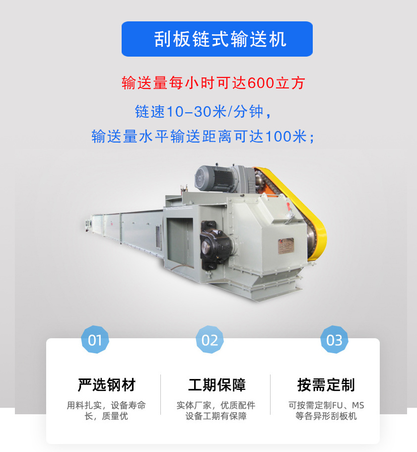 1、鏈速10-30米/分鐘,輸送量每小時可達(dá)600立方,水平輸送距離可達(dá)100米;