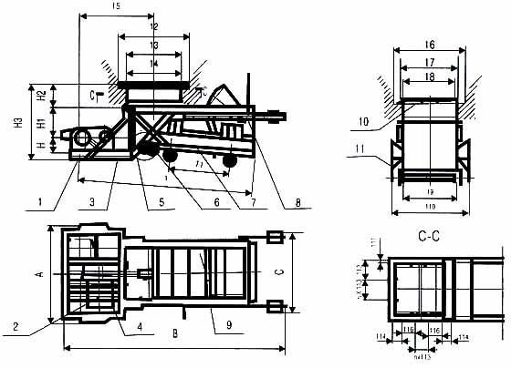 1.K型往復(fù)式給料機(jī)有帶漏斗與不帶漏斗及帶調(diào)節(jié)閘門與不帶閘門組合成的多種型式,如帶漏斗,帶調(diào)節(jié)閘門;帶漏斗不帶調(diào)節(jié)閘門。