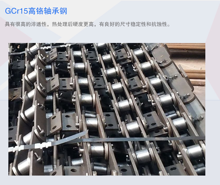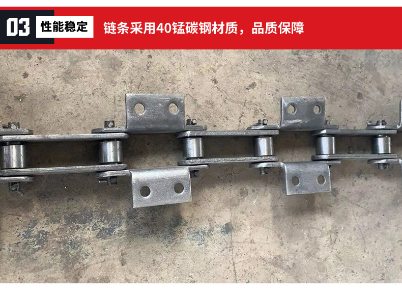 NE斗式提升機中都采用此種型號的鏈條,有NE15-NE800型號,NE15斗式提升機是單鏈,把板鏈用螺栓和料斗直接緊固在一起就行(NE板鏈上有固定的螺絲孔),NE30以上的斗式提升機都是雙鏈條的,安裝時在料斗的兩側(cè)平行擺好板鏈鏈條,在斗式提升機料斗的左右兩側(cè)分別用螺栓把鏈條和料斗逐個螺緊即可。