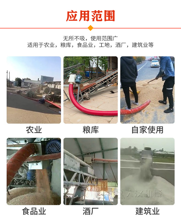 吸糧機(jī)是農(nóng)場吸糧、抽糧的好幫手,適合糧食運(yùn)輸、裝載、堆垛、儲存等,長度3-30米,每小時(shí)可輸送20噸糧食,它可以水平、傾斜或垂直輸送谷物。糧食垂直輸送時(shí),每小時(shí)輸送量可達(dá)6噸。