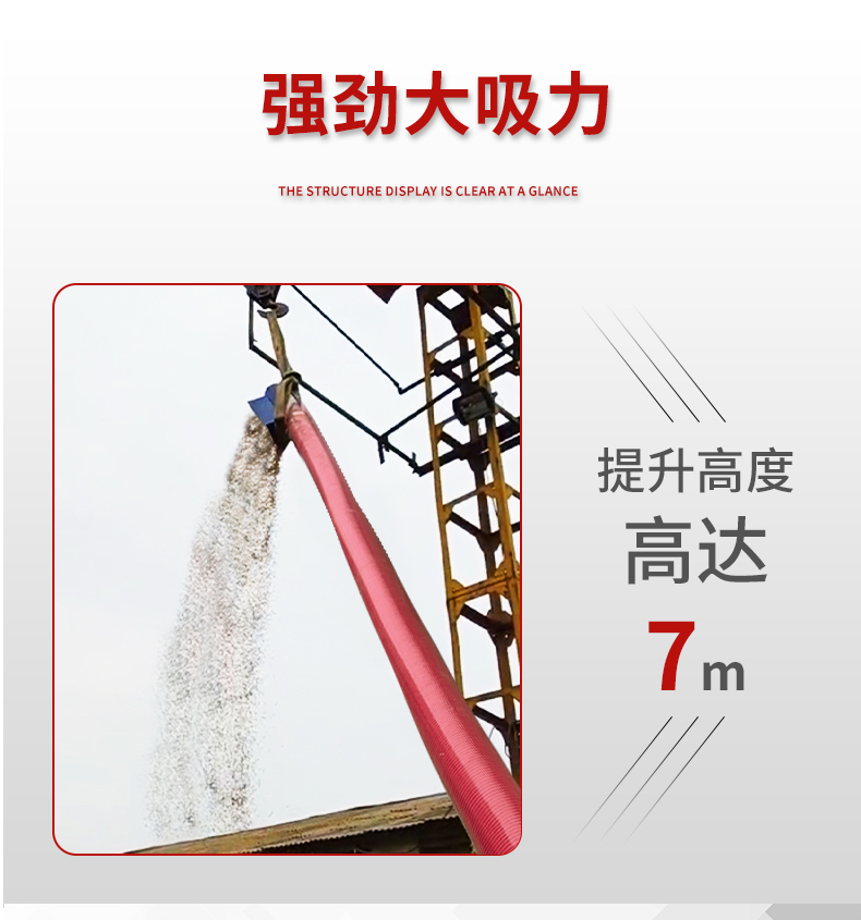 1、一機多用,可吸糧,也可用于粒狀肥料、飼料、化工產(chǎn)品等無腐蝕性的粒狀物料,一小時可收糧6-8噸。
