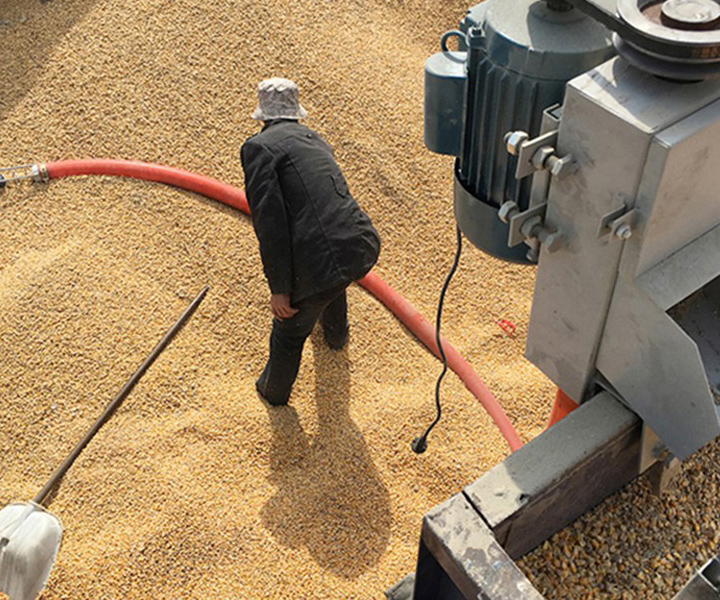 車載吸糧機可根據(jù)現(xiàn)場工作量要求采用單管和雙管,雙管設(shè)計的可在地面來回推動,進(jìn)糧側(cè)和出糧側(cè)均輕便自如。糧食點卸、倉裝,宜采用雙管。單管設(shè)計的車載吸糧機電機在出糧側(cè),體積稍大,適合在不經(jīng)常換位的固定場所使用。