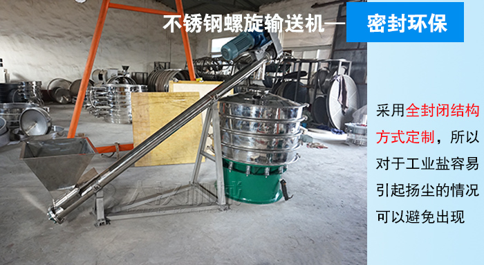 工業(yè)鹽有一定的腐蝕性,而不銹鋼螺旋輸送機(jī)就適用于輸送有腐蝕性的粉狀、顆粒狀、小塊狀等物料,在防銹的同時(shí)也能達(dá)到防腐蝕的效果。