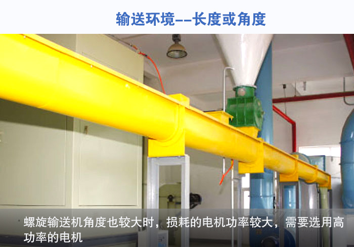 長度超過15米,管壁厚度必須在10-15mm;角度大于30度,選用高功率電機(jī)。輸送環(huán)境決定了螺旋輸送機(jī)的長度和連接方式,輸送長度較大時(shí),要求螺旋輸送機(jī)管壁的厚度必須要在10-15mm,否則螺旋輸送機(jī)容易斷裂。螺旋輸送機(jī)角度也較大時(shí),損耗的電機(jī)功率較大,需要選用高功率的電機(jī)。