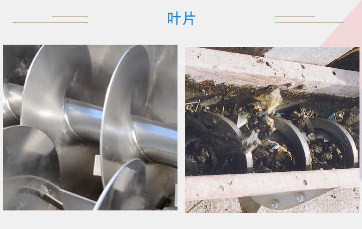 不同性質(zhì)的物料對螺旋輸送機(jī)的葉片形狀、材質(zhì)有不同的要求。針對一般物料,可選擇碳鋼材質(zhì)的有軸葉片,對于一些粘性大,纏繞性物流,就需要選擇無軸螺旋葉片,對衛(wèi)生環(huán)境有要求的物料,葉片一般建議選擇不銹鋼材質(zhì),磨琢性強(qiáng)的物料則要選擇錳鋼材質(zhì)的葉片。