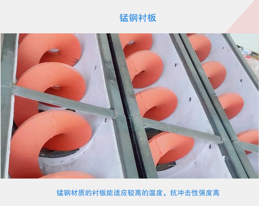 錳鋼材質(zhì)的襯板能適應(yīng)較高的溫度,抗沖擊性強(qiáng)度高,耐腐蝕性好,比較適合耐磨性大的物料。雖說(shuō)錳鋼成本相比其他兩種來(lái)說(shuō)更高一些,但實(shí)用性也相對(duì)較高。