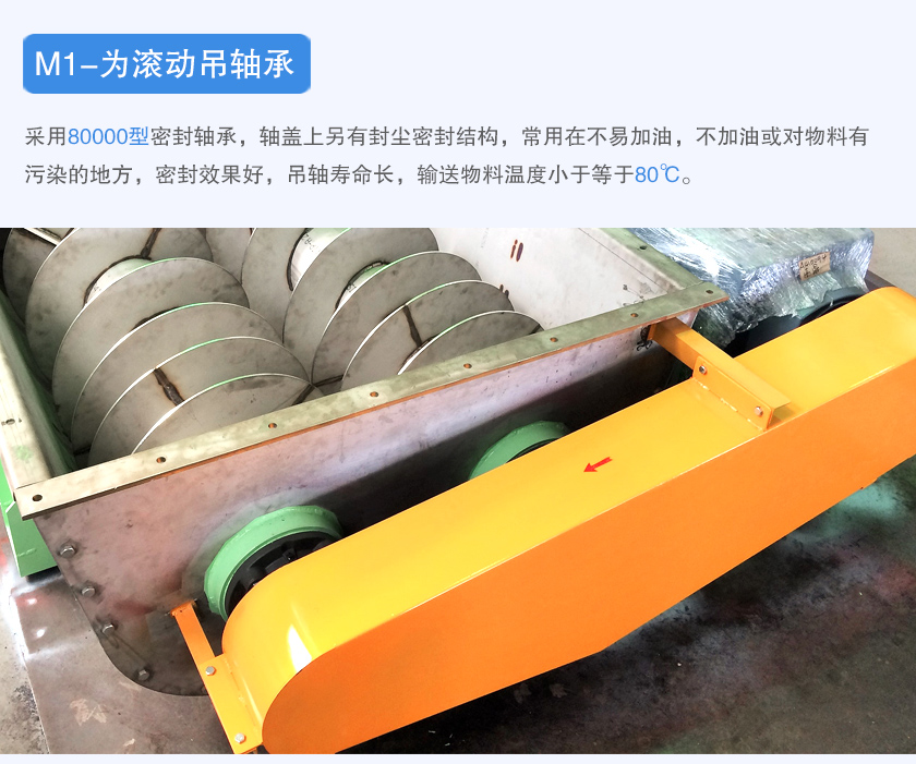 U型螺旋輸送機(jī)外形為u型槽式,根據(jù)其驅(qū)動(dòng)方式、中間吊軸承、材質(zhì)可以分為以下幾種類(lèi)型: