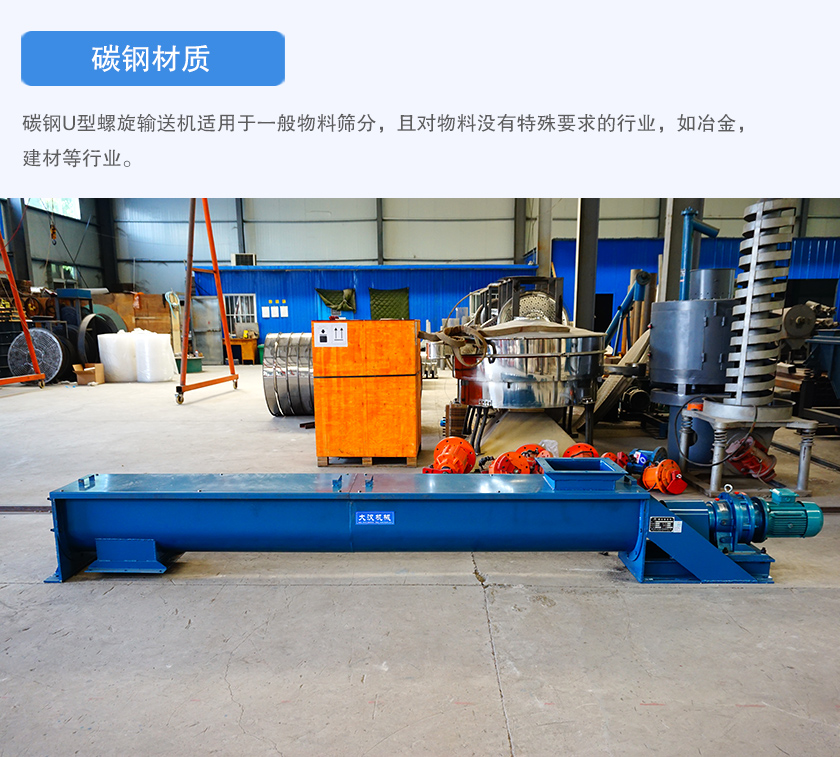 碳鋼U型螺旋輸送機(jī)適用于一般物料篩分,且對(duì)物料沒(méi)有特殊要求的行業(yè),如冶金,建材等行業(yè)。